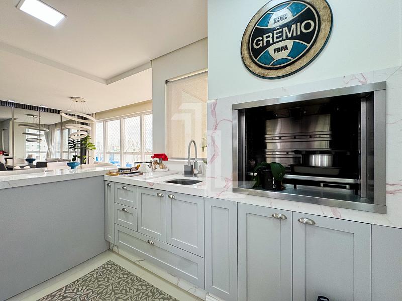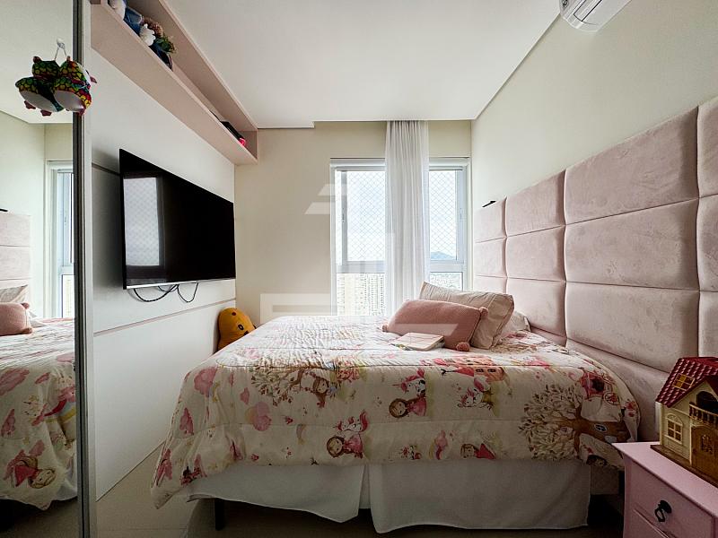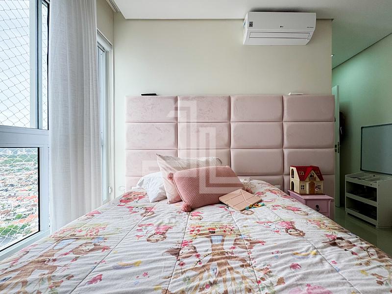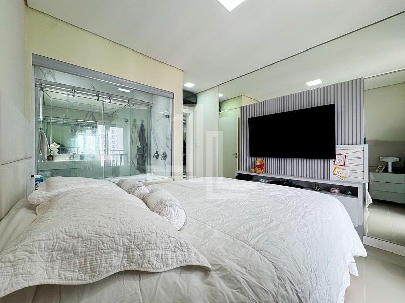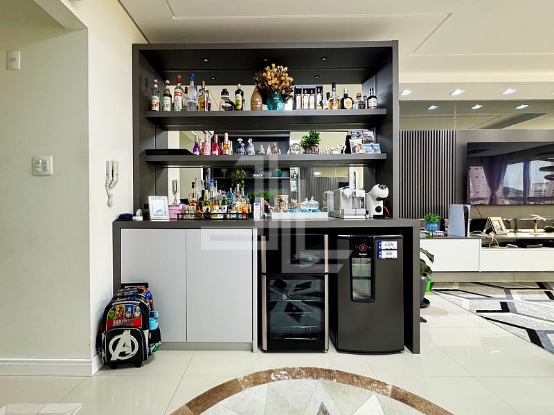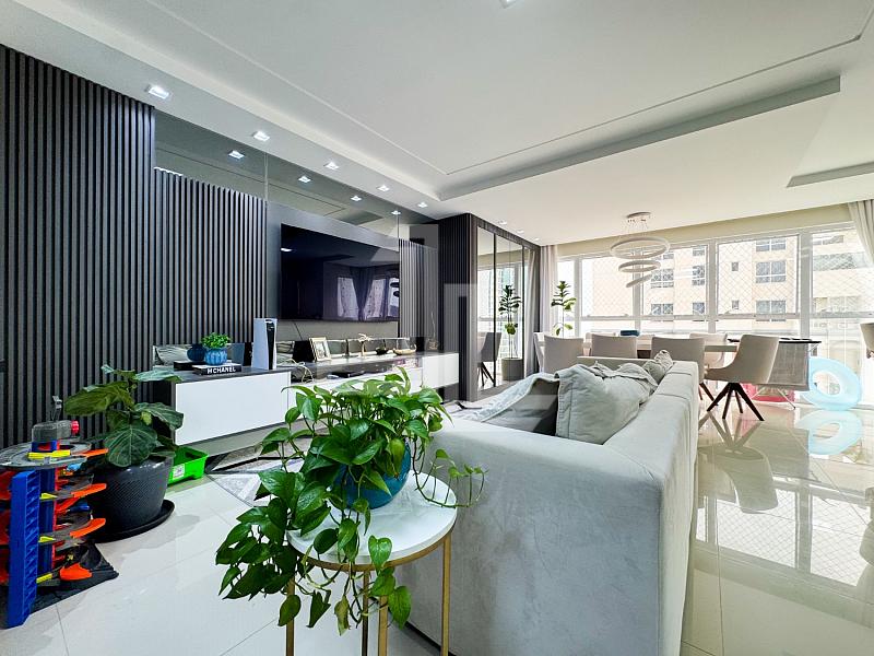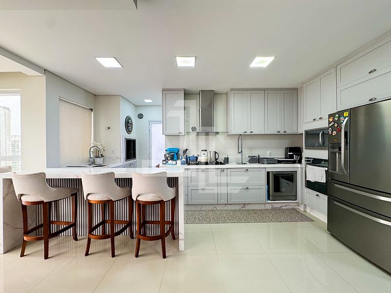 A área social é integrada, com sala para dois ambientescozinha americana planejada e sacada com churrasqueira, criando um espaço funcional e elegante para receber com privacidade. O apartamento é totalmente mobiliado, com móveis planejadospiso porcelanatoacabamento em gessoar-condicionado instalado e fechadura eletrônica, atendendo ao padrão exigido por compradores de alto nível.