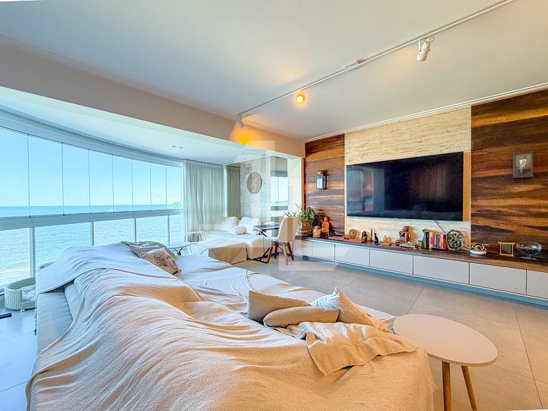 Este é um apartamento amplo frente mar em Balneário Camboriú, ideal para famílias que desejam espaço interno generoso aliado à vista permanente do oceano.