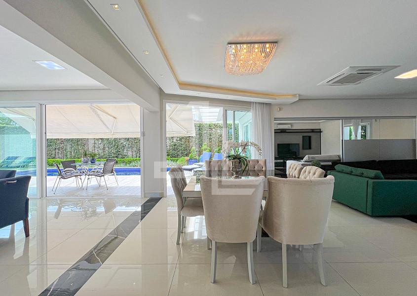 No bairro Jurerê Internacional junto ao bosque Amoraeville, este imóvel de 470m² construídos, incluindo a piscina, terreno de 613m² e está à uma distância de 5 quadras do mar em um lugar seguro e tranquilo. A casa conta com um sistema de segurança patrimonial, com alarmes, equipe de apoio e rondas a pronta resposta.