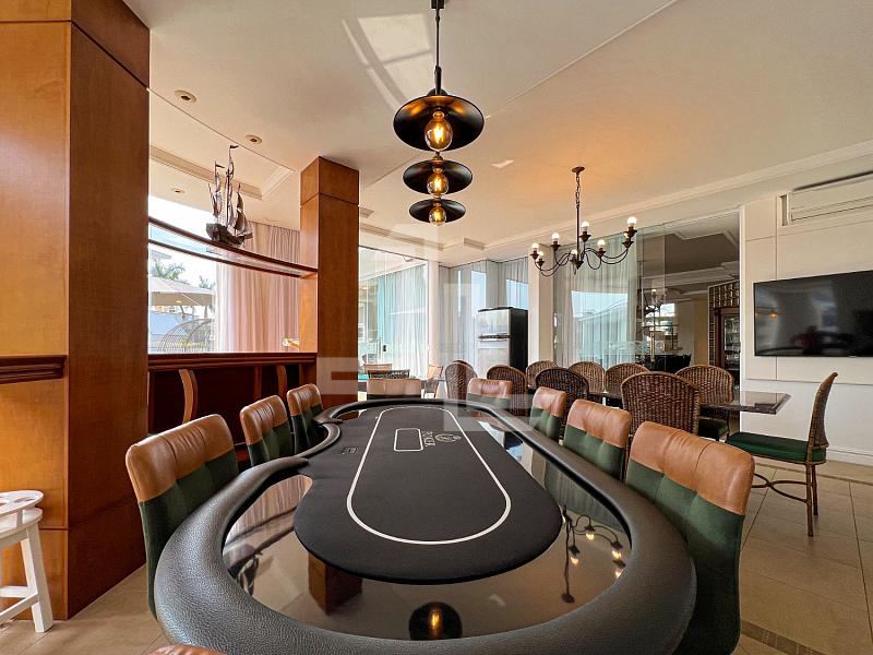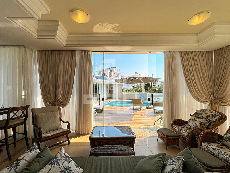 Casa de  8 dormitórios, sendo 6 suítes, com churrasqueira integrada a piscina,  próximo ao praia á 300m da Praia de Jurerê Internacional